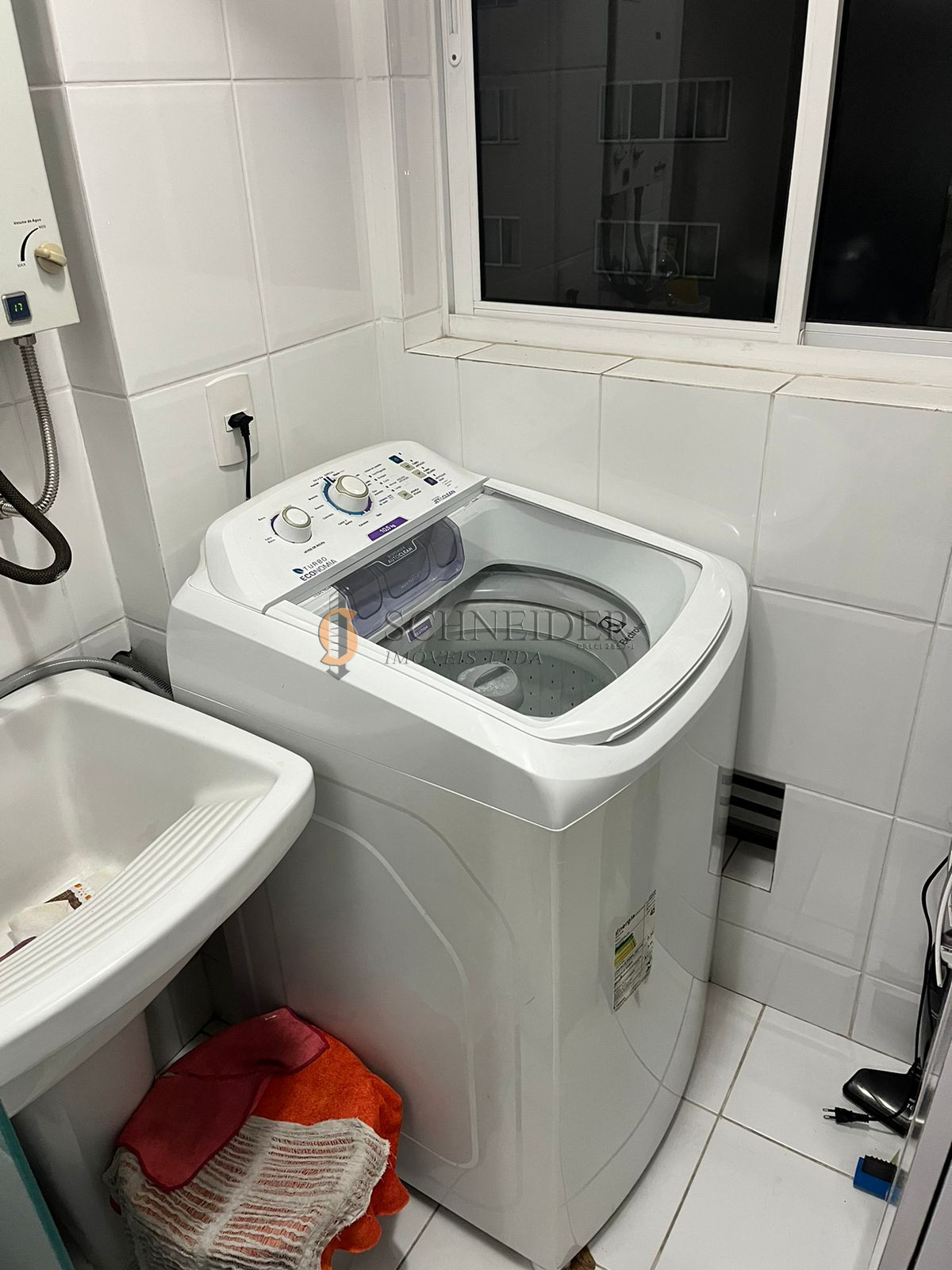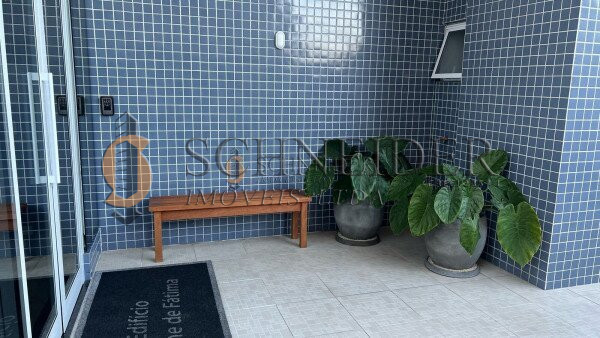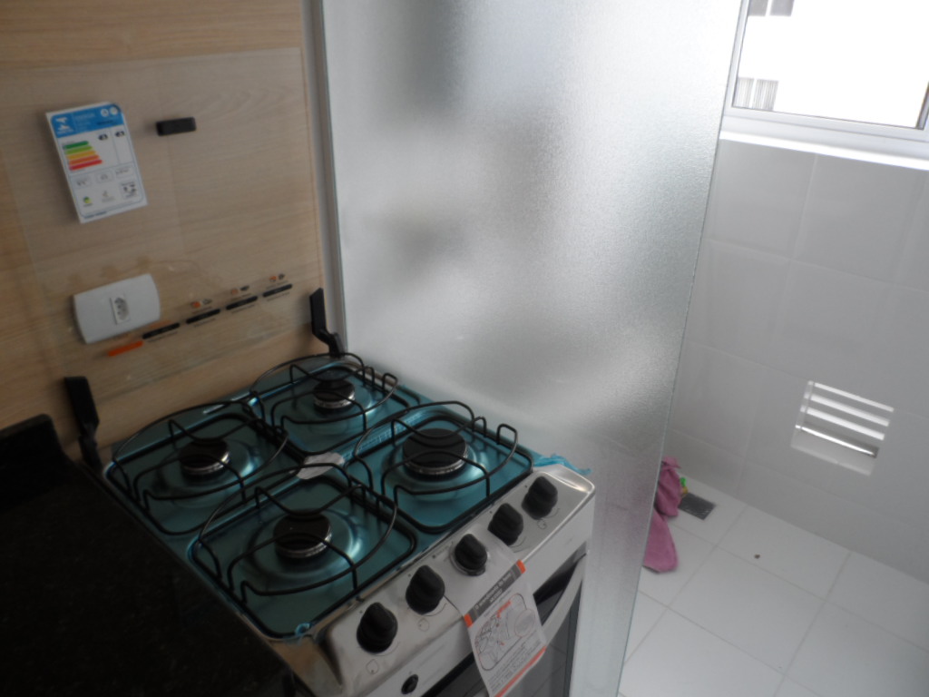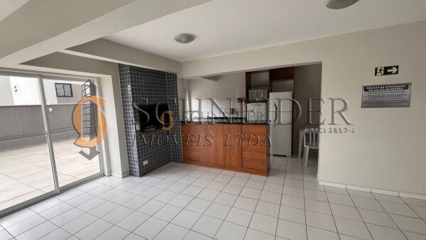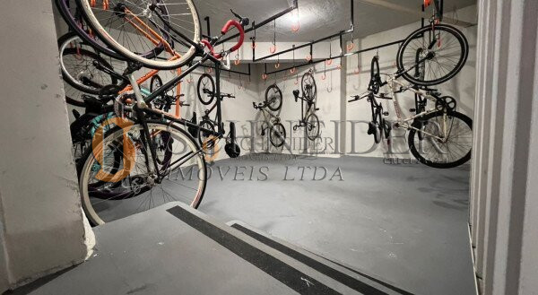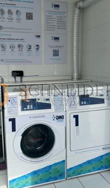 Prédio pastilhado, com dois elevadores, salão de festas com churrasqueira, mercadinho, lavandeira industrial OMO e bicicletário.