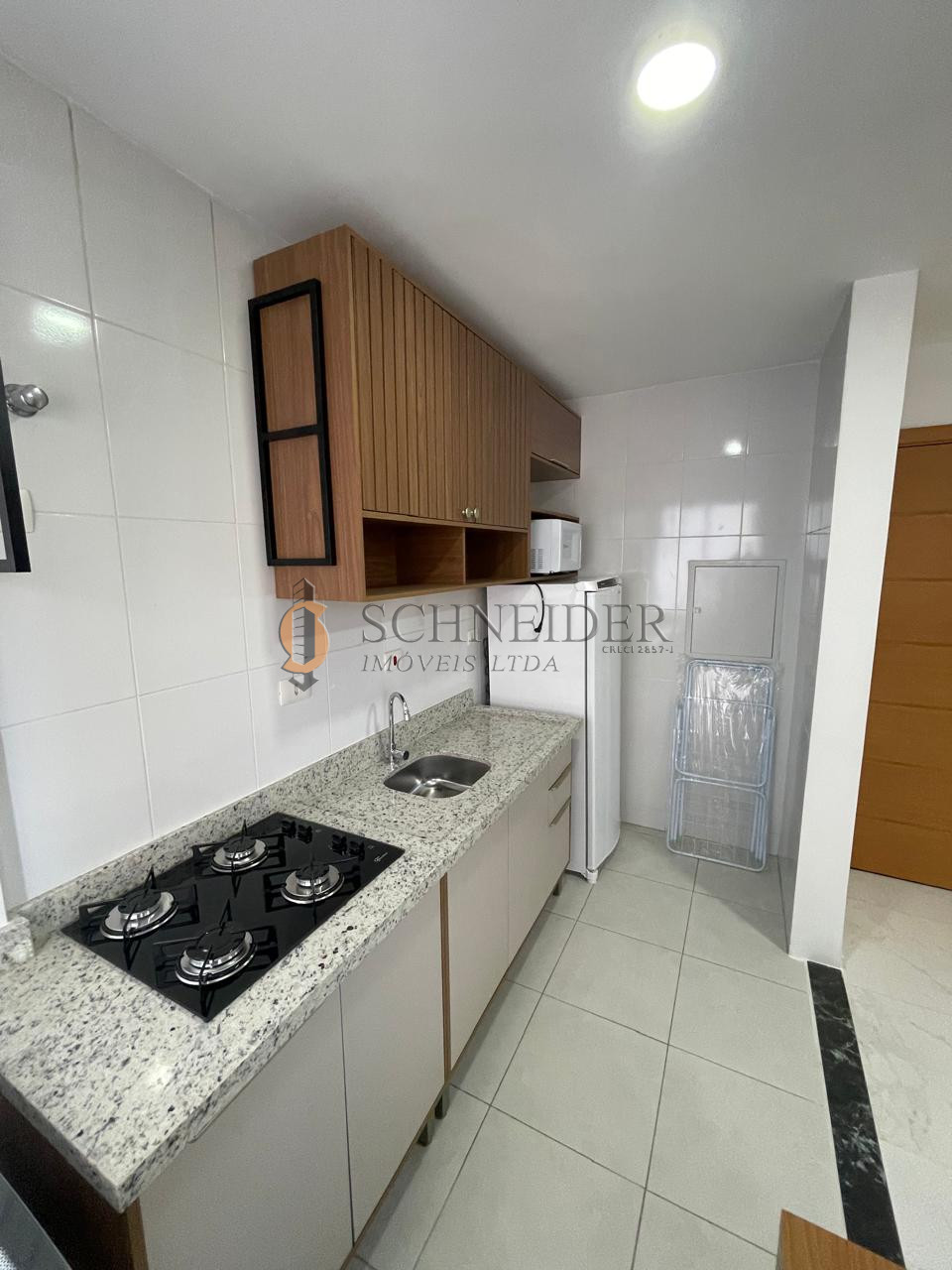 Apartamento Mobiliado, com um quarto, sala, cozinha com armários e área de serviço com maquina de lavar, fogão cooktop de quatro bocas e geladeira micro-ondas. BWC social completo, condomínio baixo.