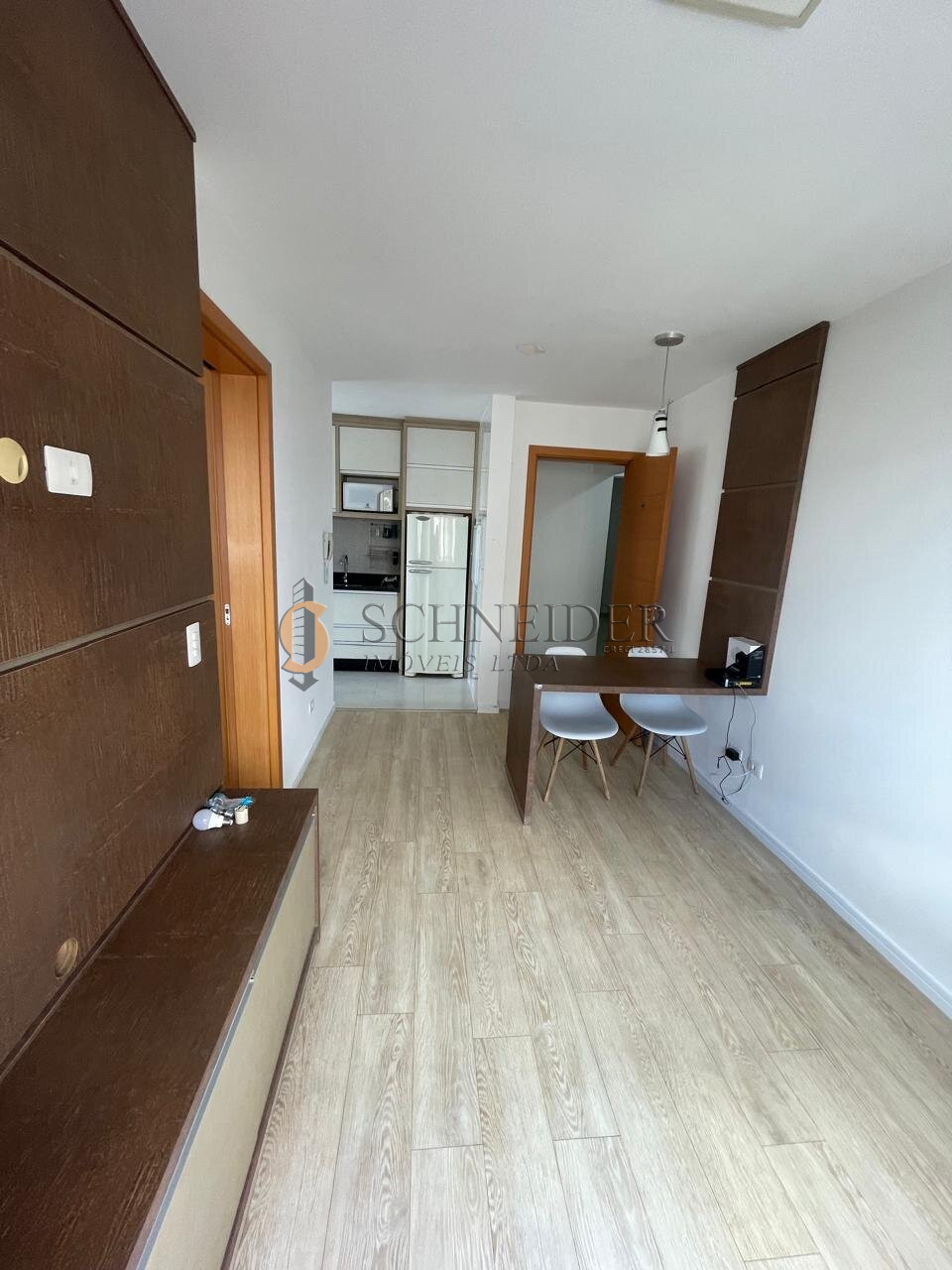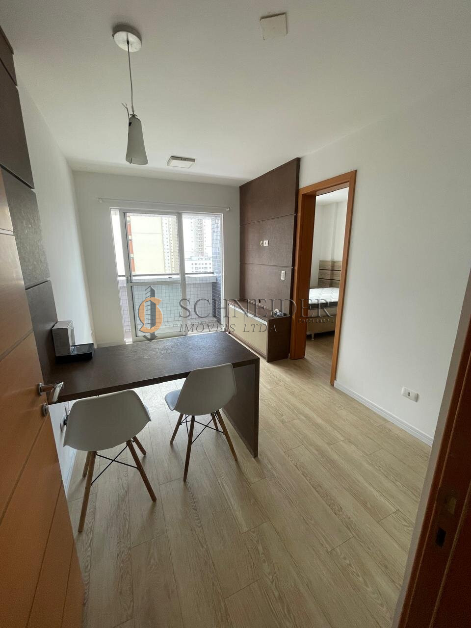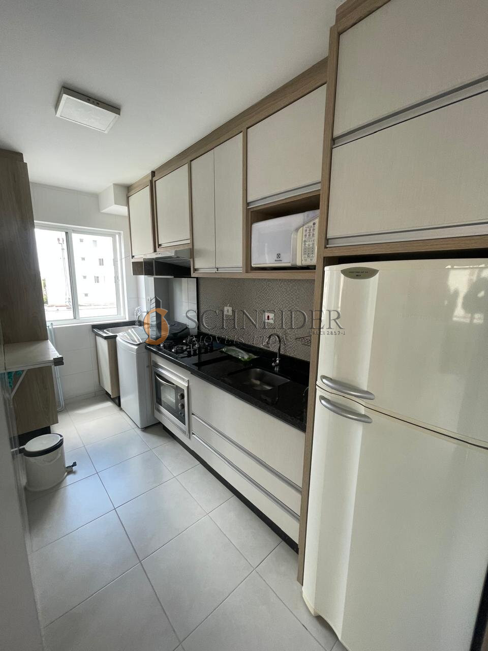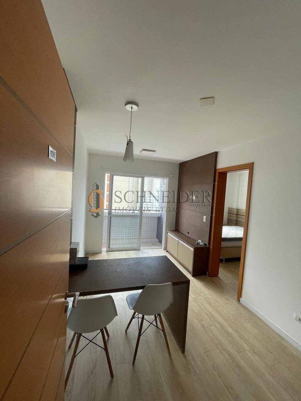 Apartamento MOBILIADO contendo um quarto com armários, cama de casal e cortinas, sala de estar com rack e painel de TV, mesa com duas cadeiras, sacada, cozinha completo com armários, fogão, depurador, forno embutido, micro-ondas, geladeira, área de serviço com máquina de lavar e tanque, BWC social completo com armários espelho, box blindex, com pia de mármore travertino.