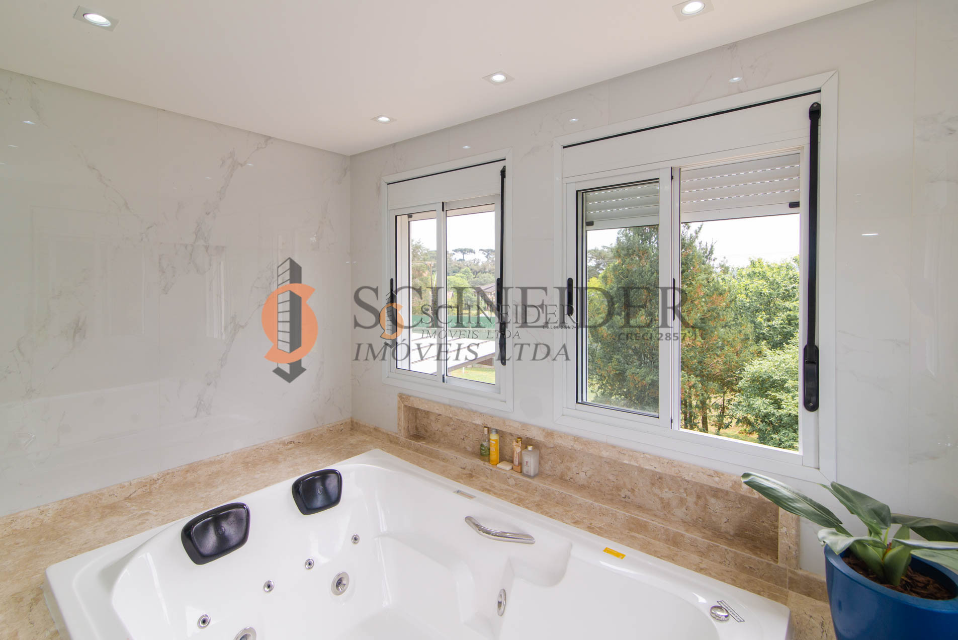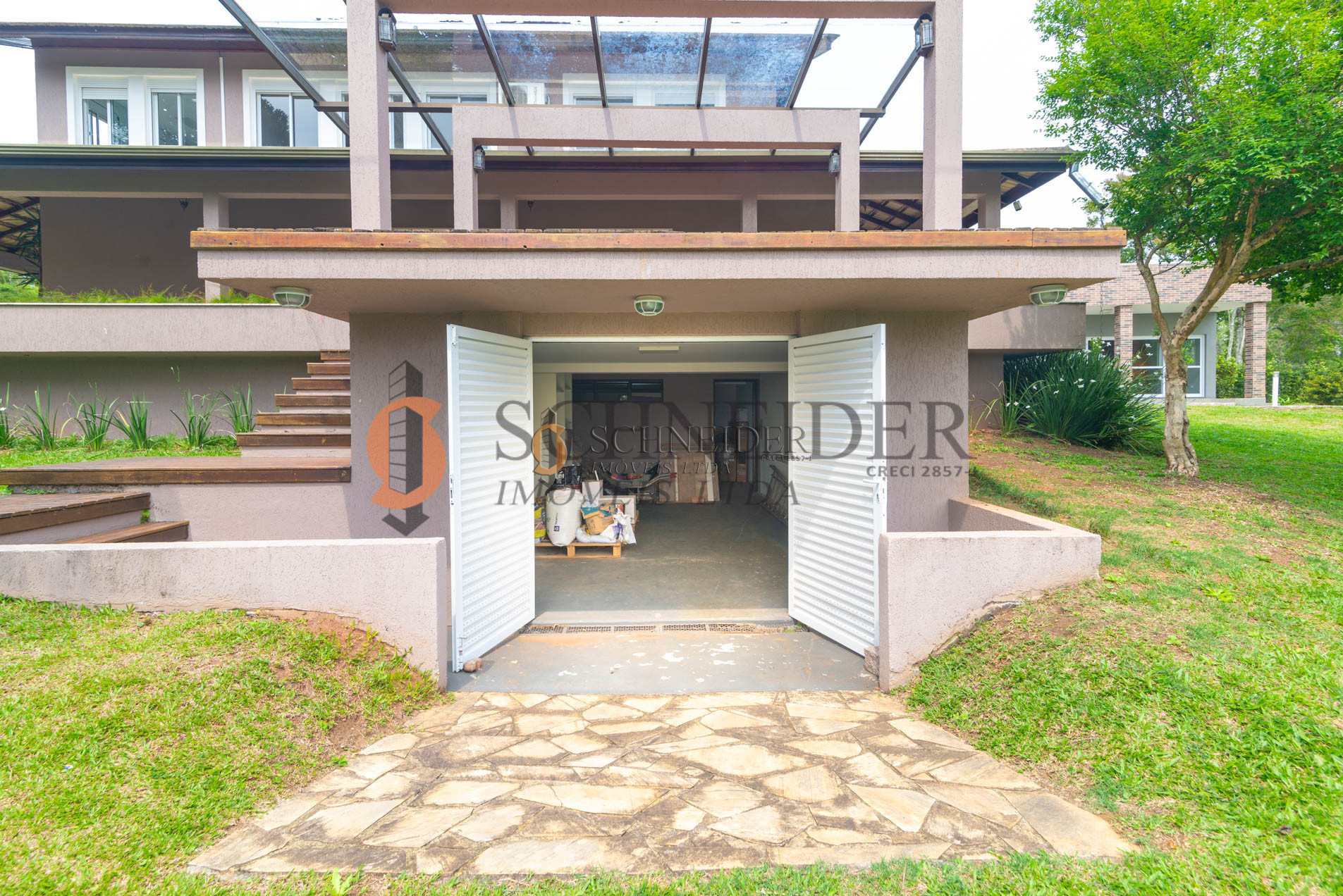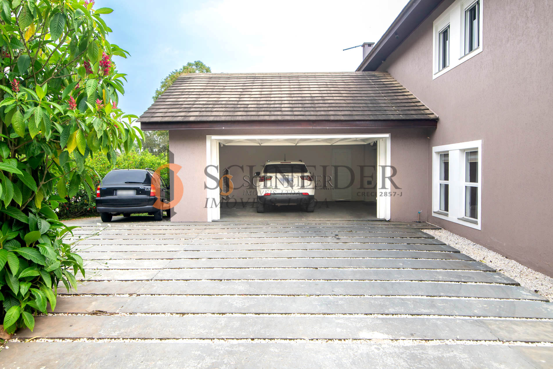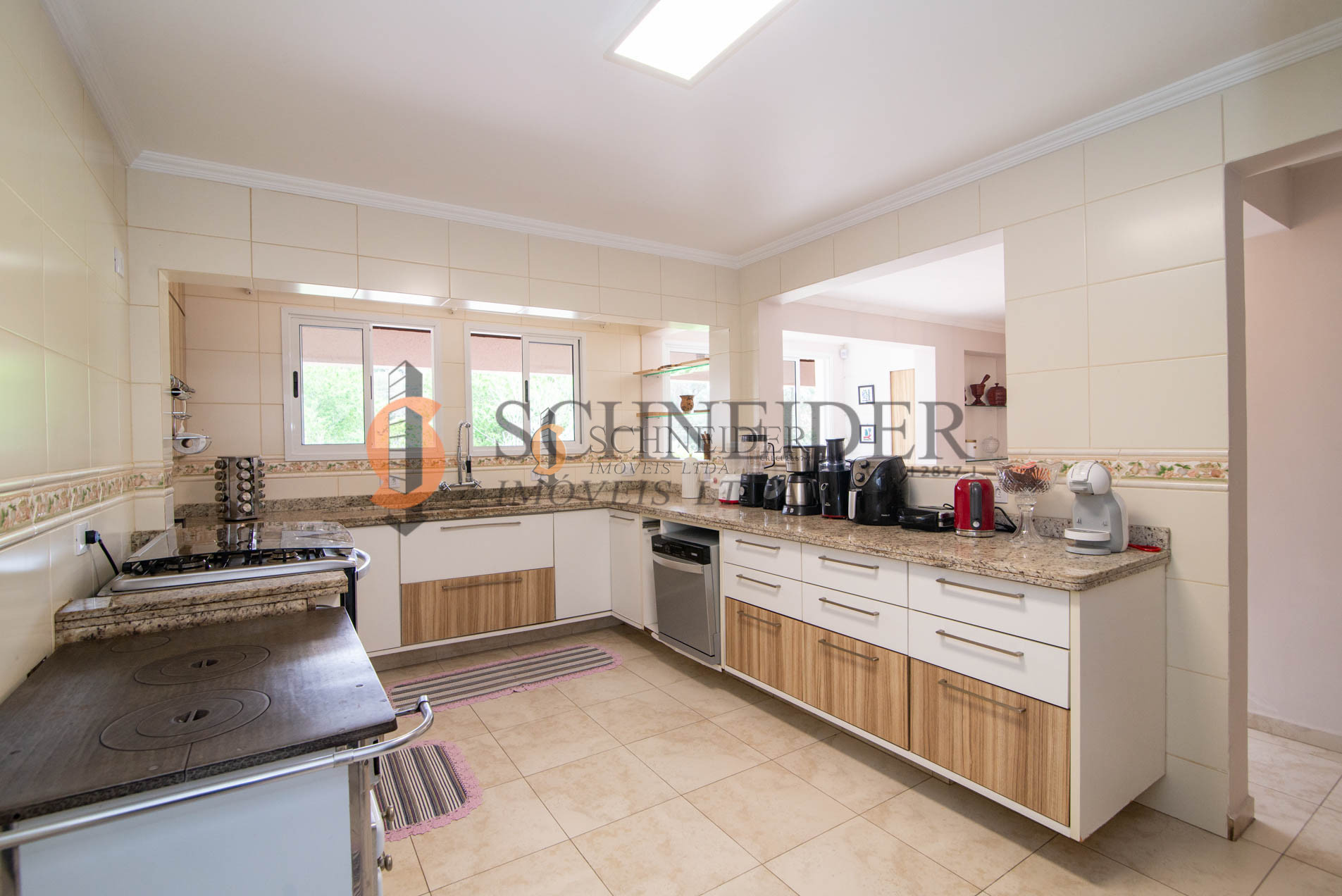 Casa com dois pavimentos e acabamento de alto padrão, sendo a parte térrea com uma ampla sala de estar em dois níveis, com lareira, teto rebaixado com ótima iluminação, adega, lavabo, estendendo para uma ampla varanda com deck e cobertura de vidro, cozinha completa de armários, fogão embutido, fogão a lenha, ótimo para aquecer o inverno, área de serviço, garagem fechada para dois carros, espaço fora para mais três carros, despensa ampla.