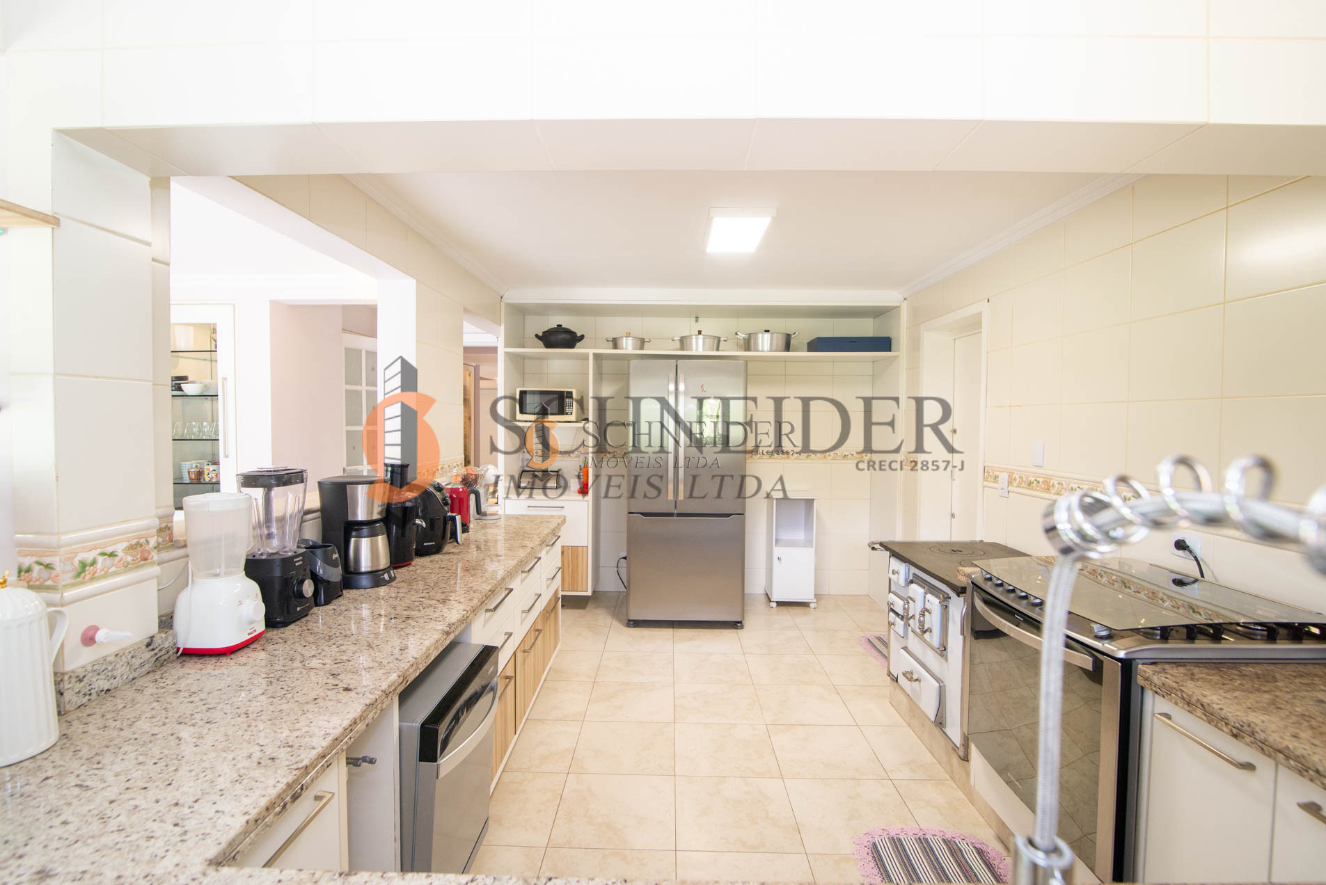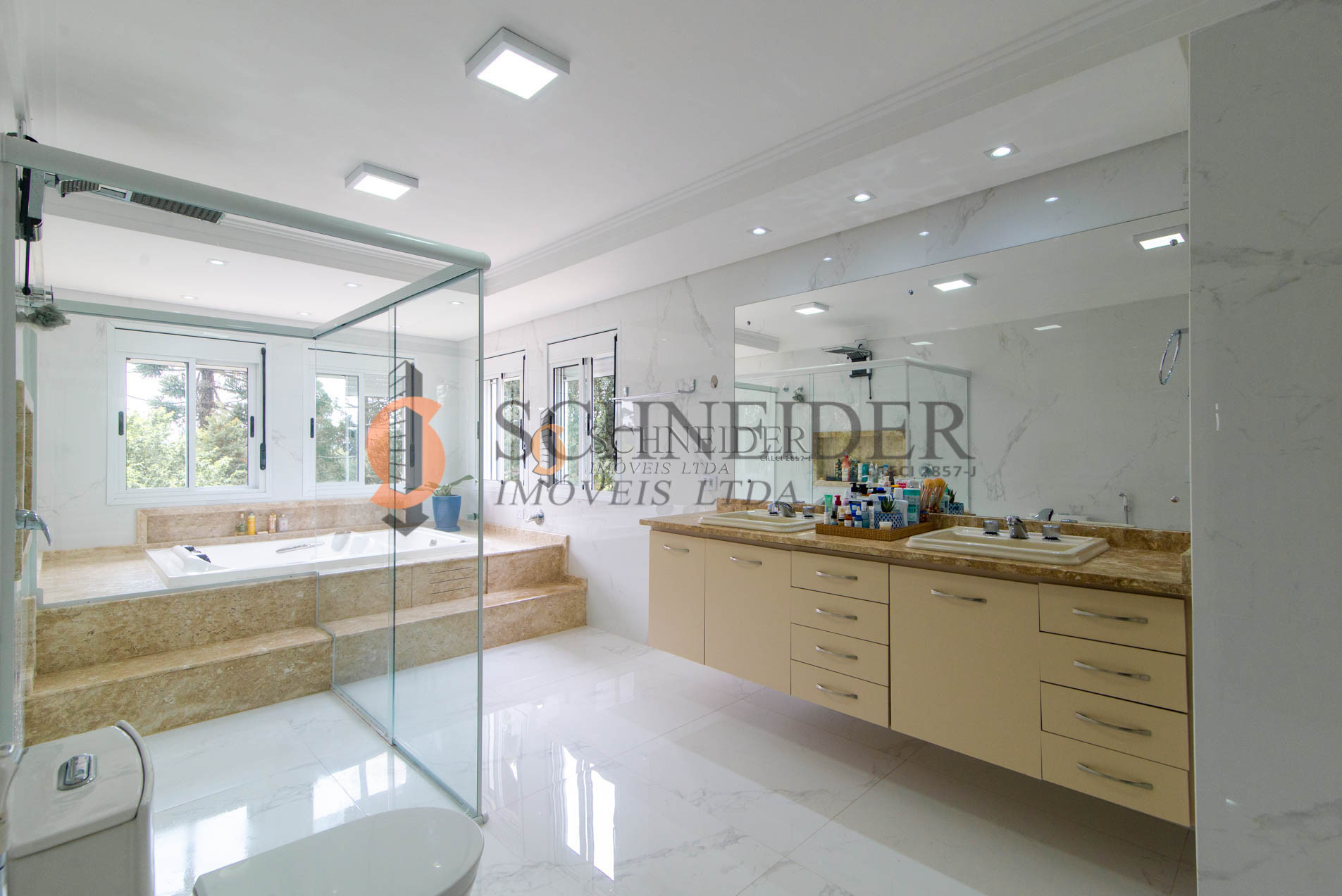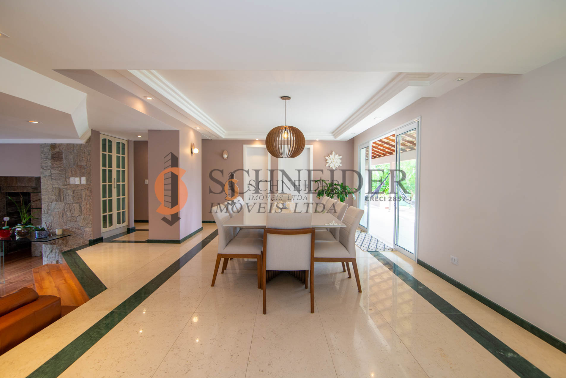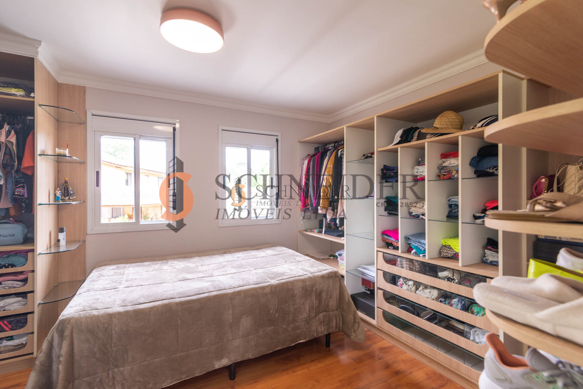 Casa com dois pavimentos e acabamento de alto padrão, sendo a parte térrea com uma ampla sala de estar em dois níveis, com lareira, teto rebaixado com ótima iluminação, adega, lavabo, estendendo para uma ampla varanda com deck e cobertura de vidro, cozinha completa de armários, fogão embutido, fogão a lenha, ótimo para aquecer o inverno, área de serviço, garagem fechada para dois carros, espaço fora para mais três carros, despensa ampla.