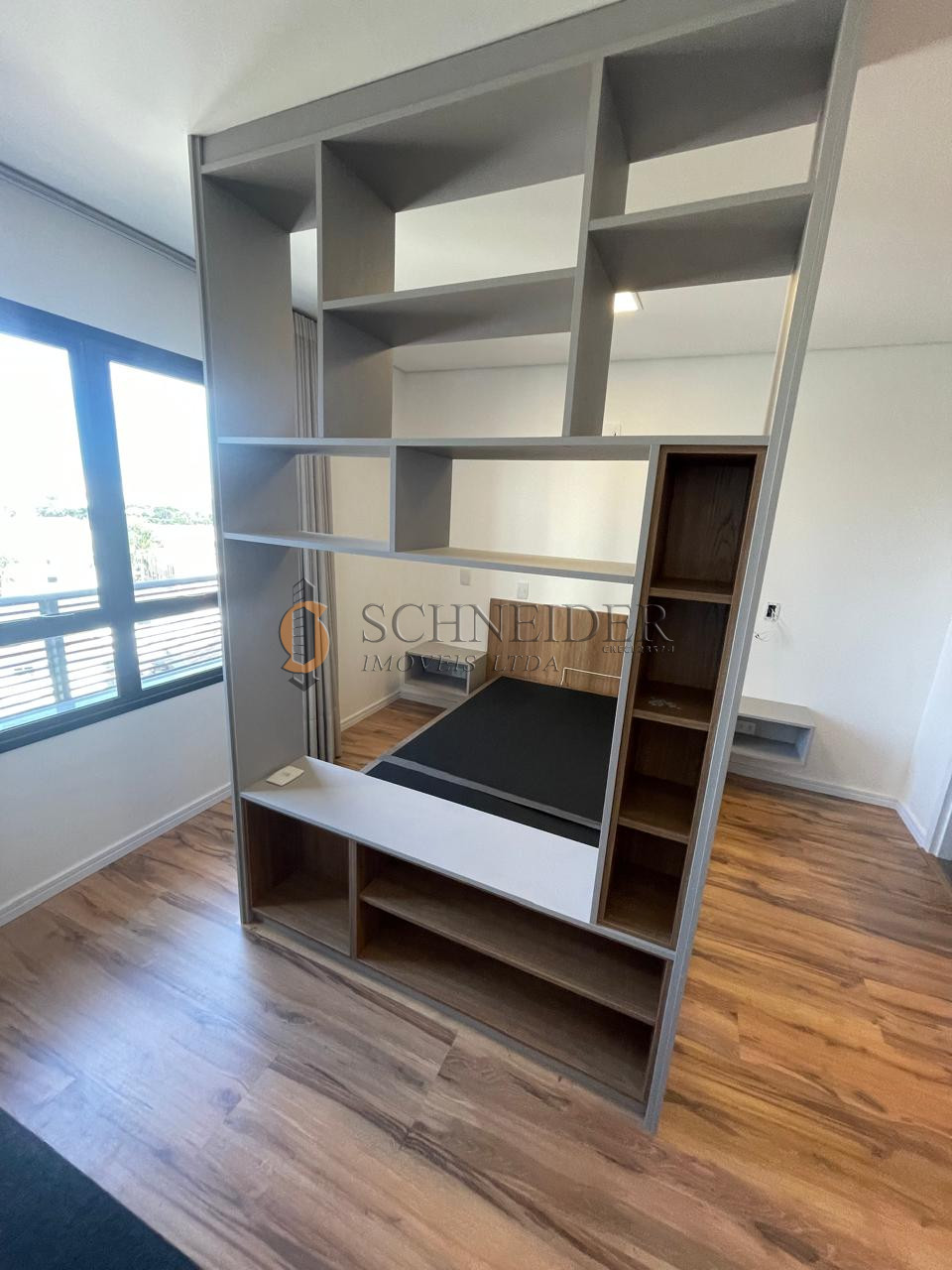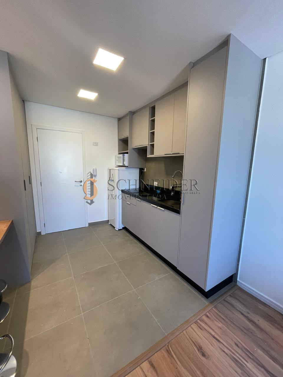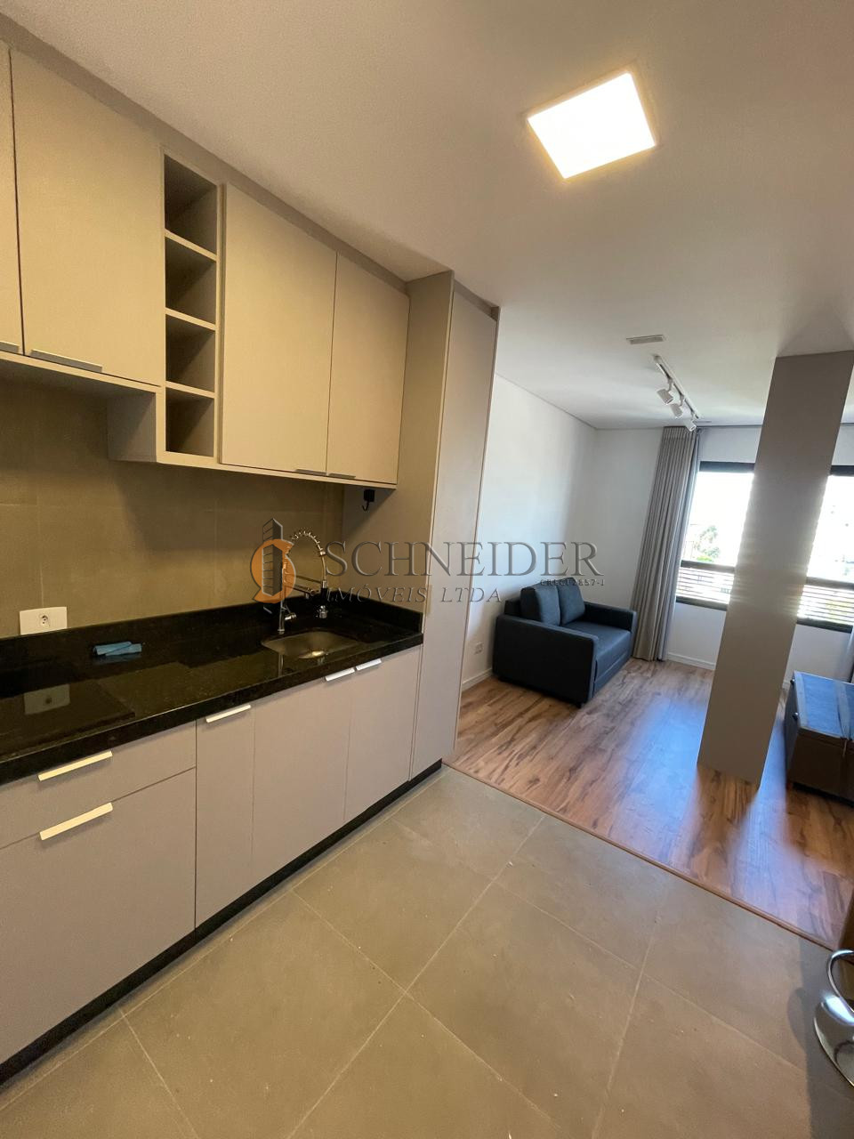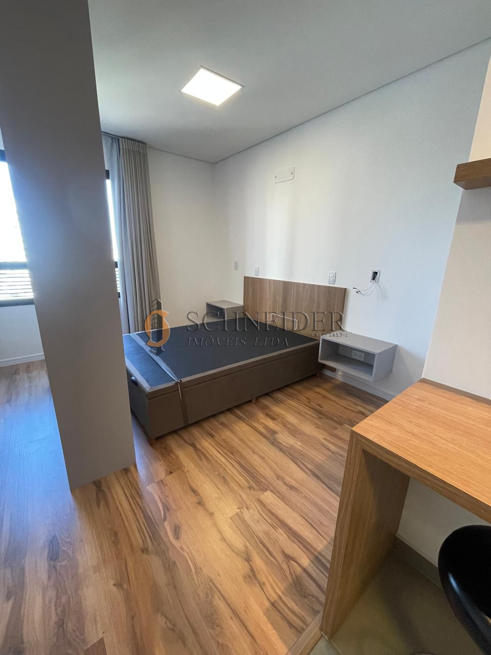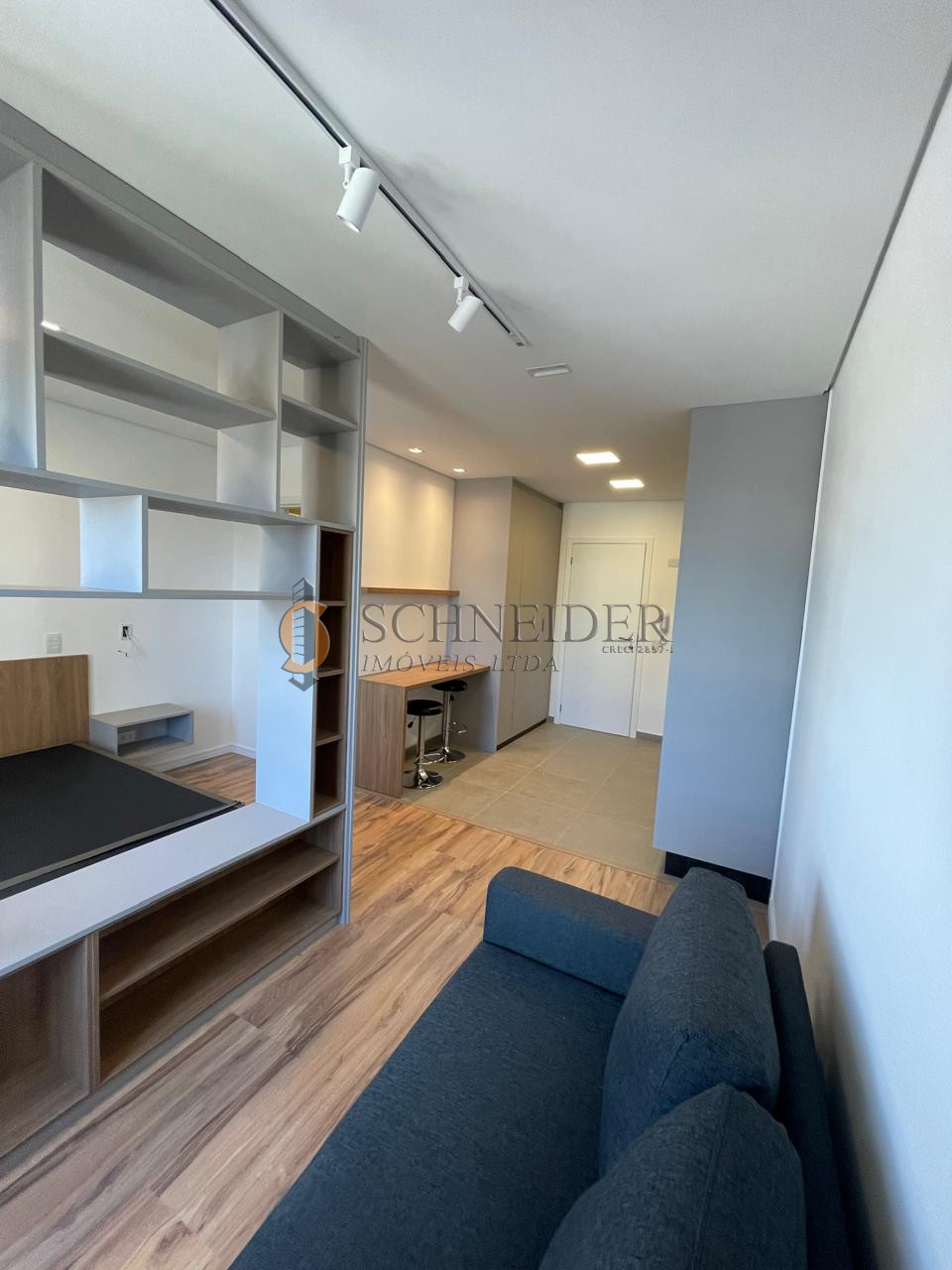 Apartamento Studio, completamente mobiliado com móveis e eletrodomésticos como geladeira, fogão elétrico, micro-ondas, conta também com ar condicionado, contendo sala, quarto conjugado, cozinha com armários planejados, banheiro com armários e box blindex.
