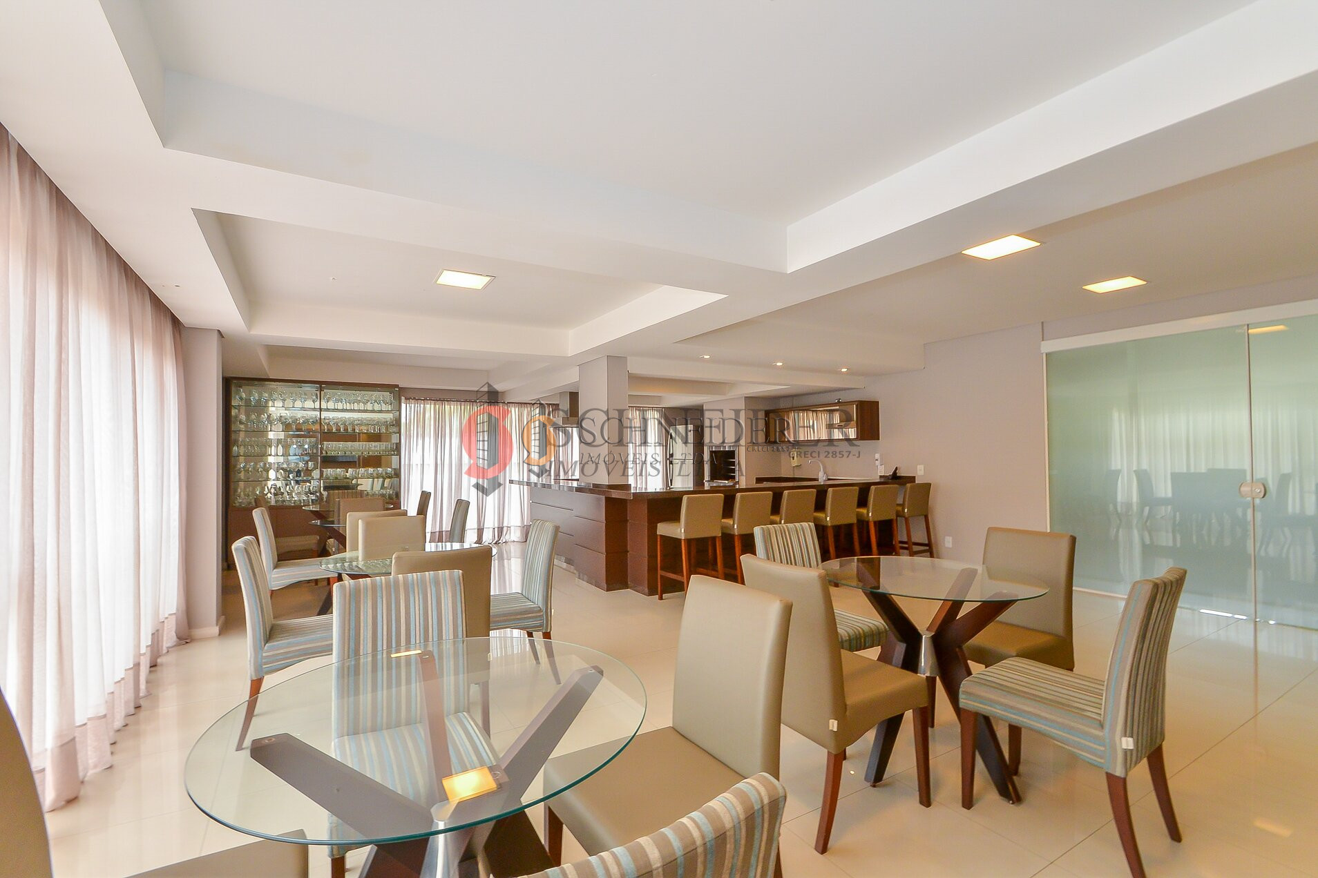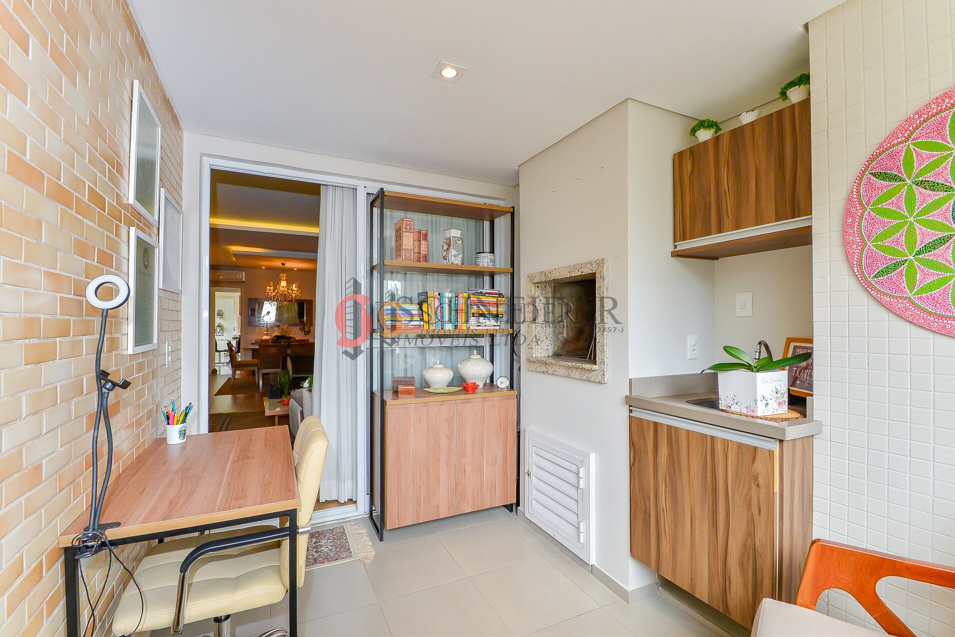 Apartamento todo montado com moveis planejados, sala ampla com lavado, sacada com churrasqueira, com jogo de mesa de jantar com cadeiras, balcão com espelho e uma sofá de alto padrão.